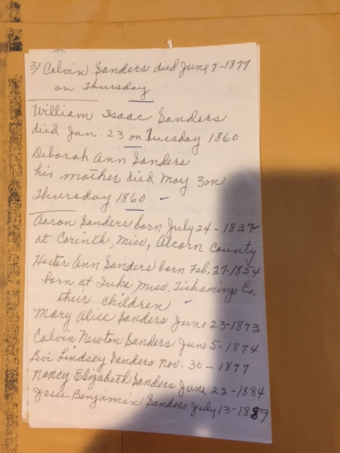 received from Alma Irene Sanders Owens, a great granddaughter of Isaac